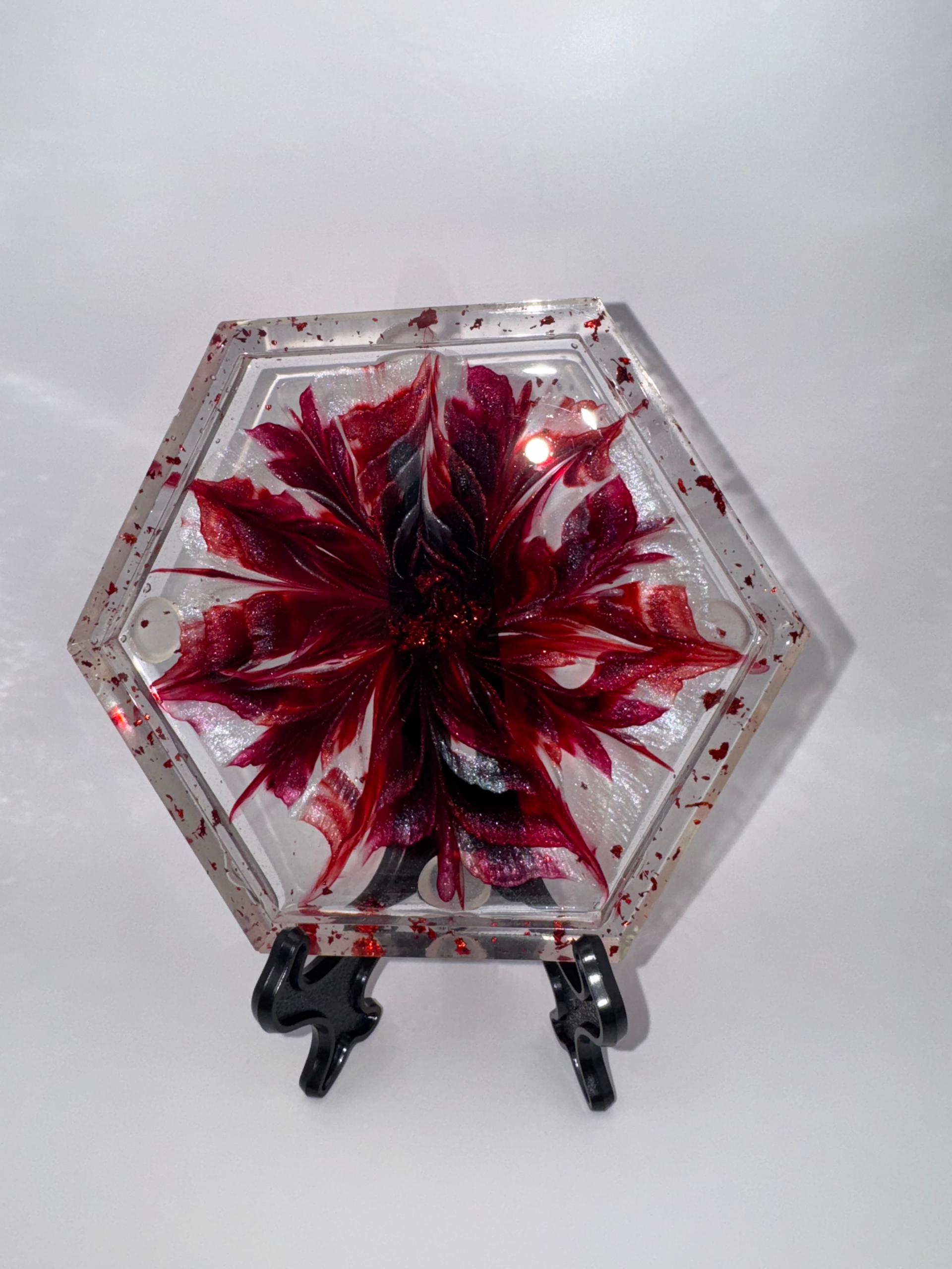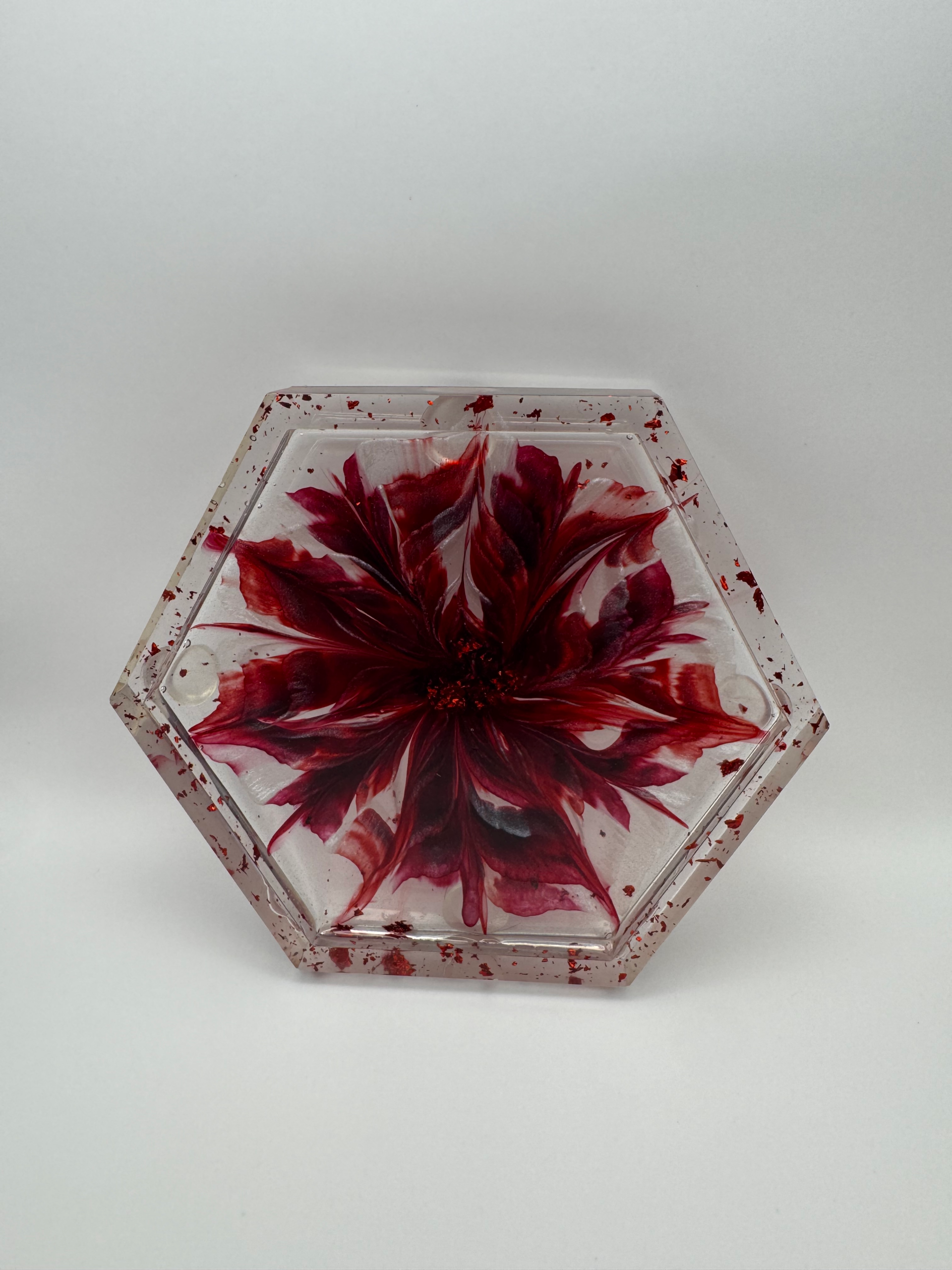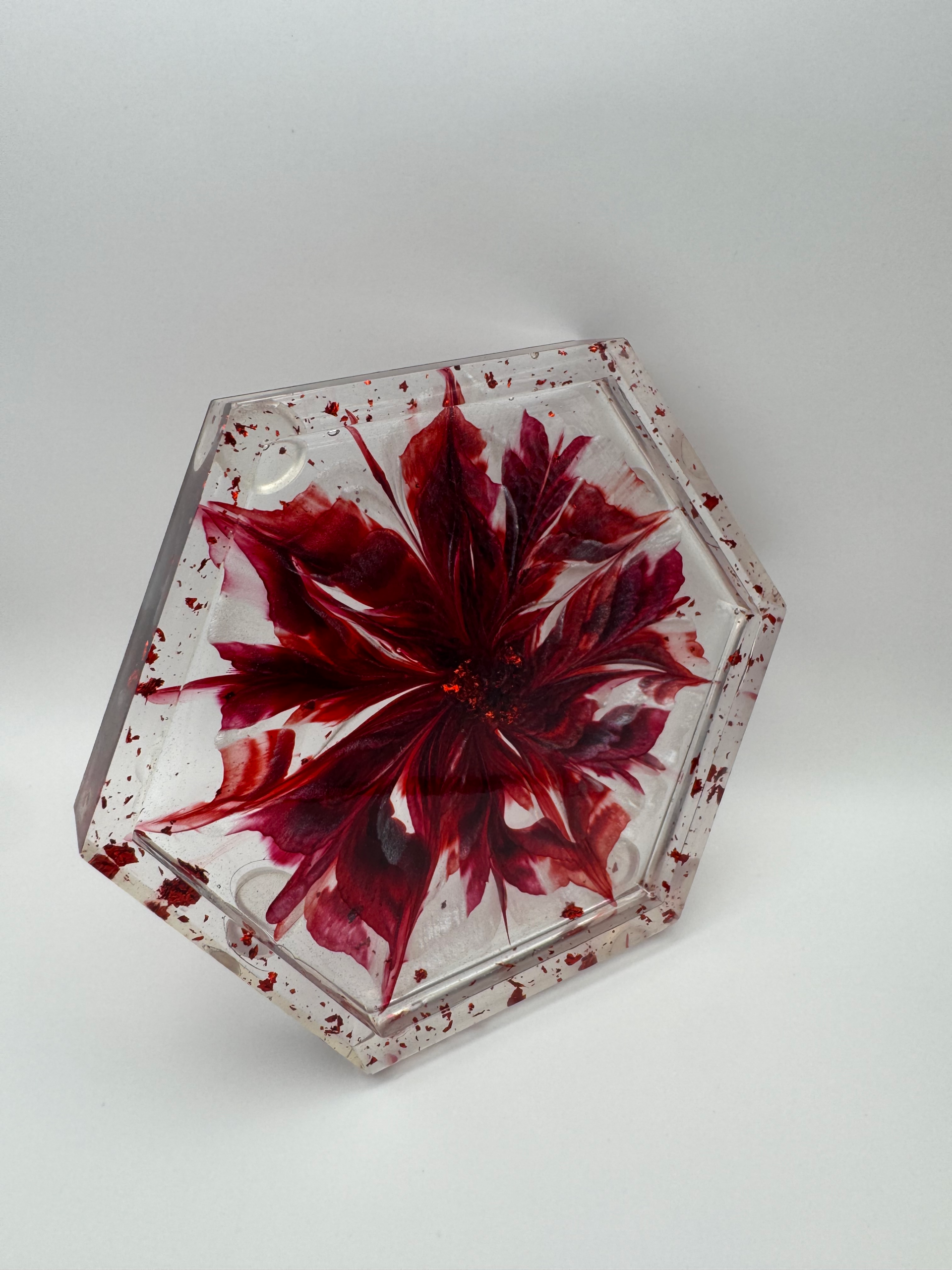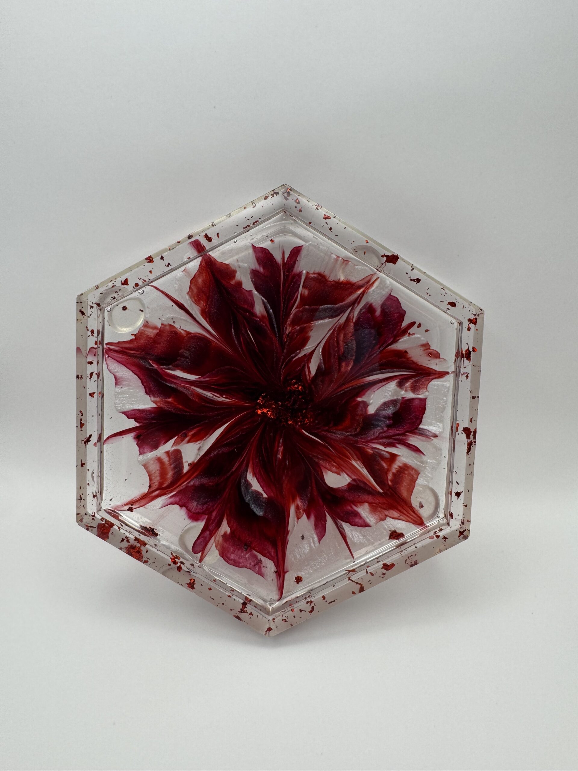 Add a touch of romance with EpoxyBin’s Medium Dark Red Burgundy Hexagon Flowerbloom Tray. Our Handcrafted trays create a rich, elegant accent for jewelry and décor.